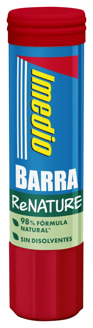 Barra adhesiva con envase fabricado con un 58% de materias primas vegetales. Pega papel y cartón de forma rápida, fuerte y duradera, es altamente eficaz y lavable en agua fría. La fórmula del pegamento está compuesta por un 98% de ingredientes naturales (incluida el agua) y no contiene disolventes.
